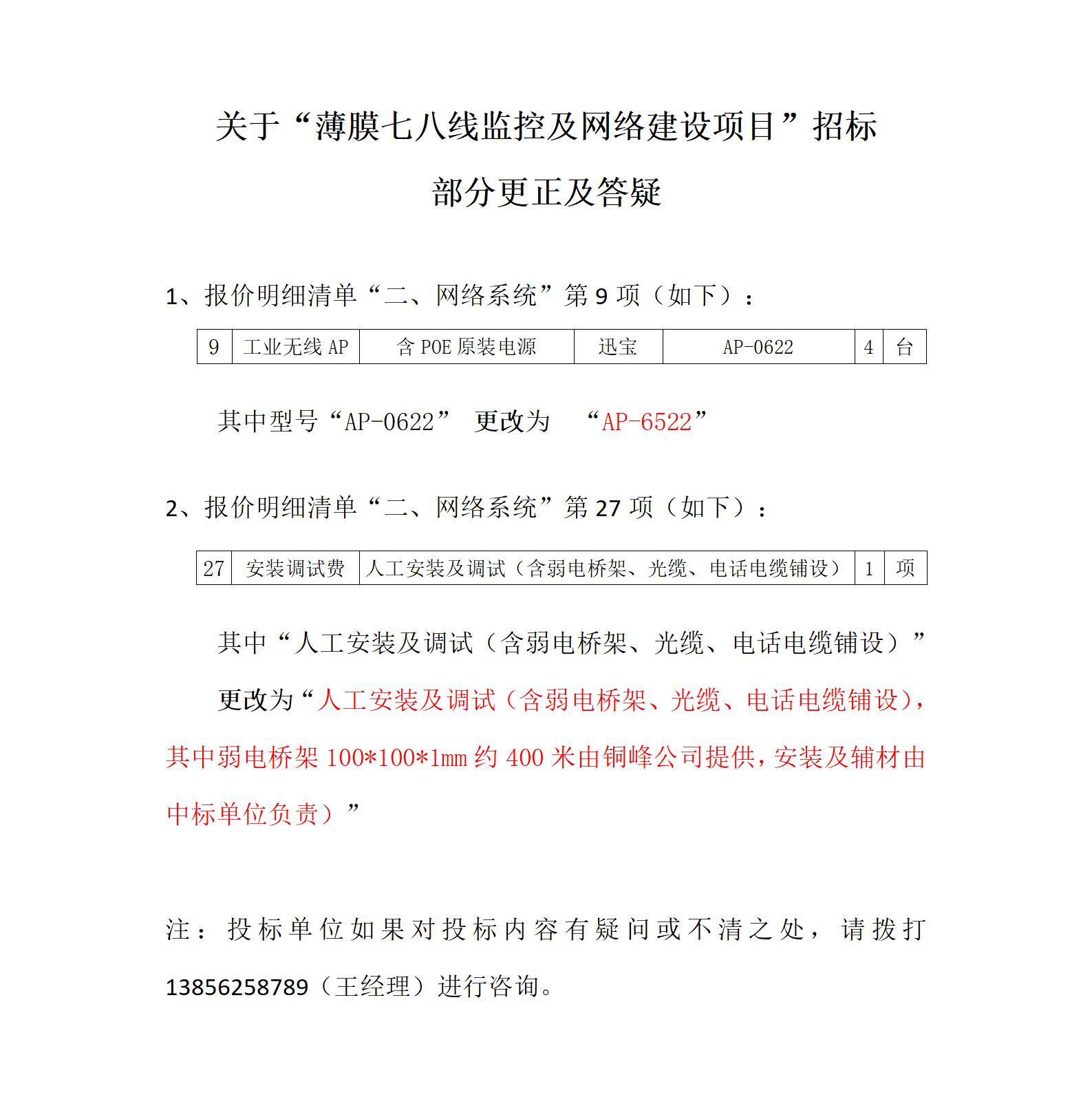 • 旋乐吧SPIN8薄膜七八线监控及网络项目—招标清单更改及答疑
