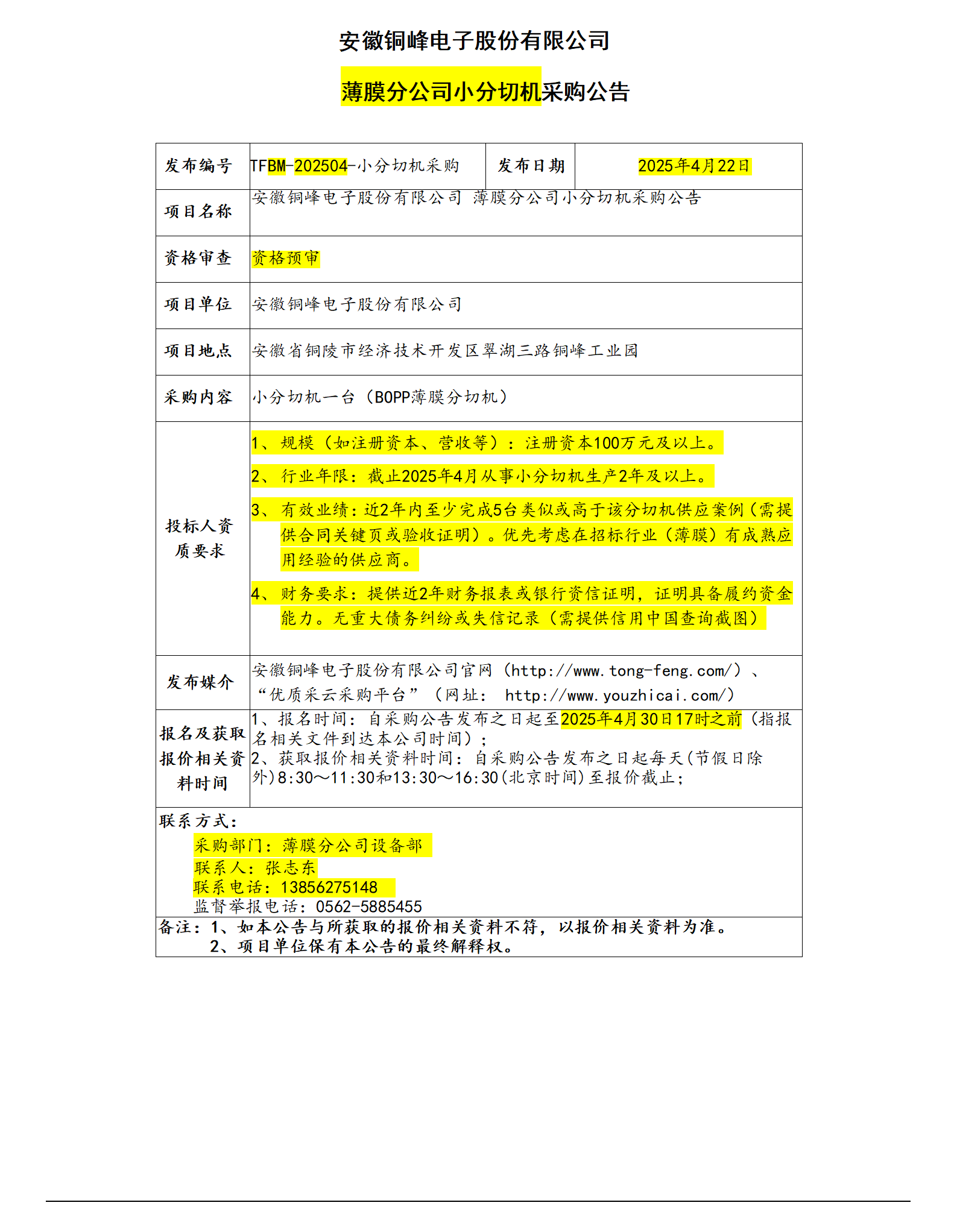 安徽旋乐吧SPIN8电子股份有限公司—— 薄膜分公司小分切机采购公告_01