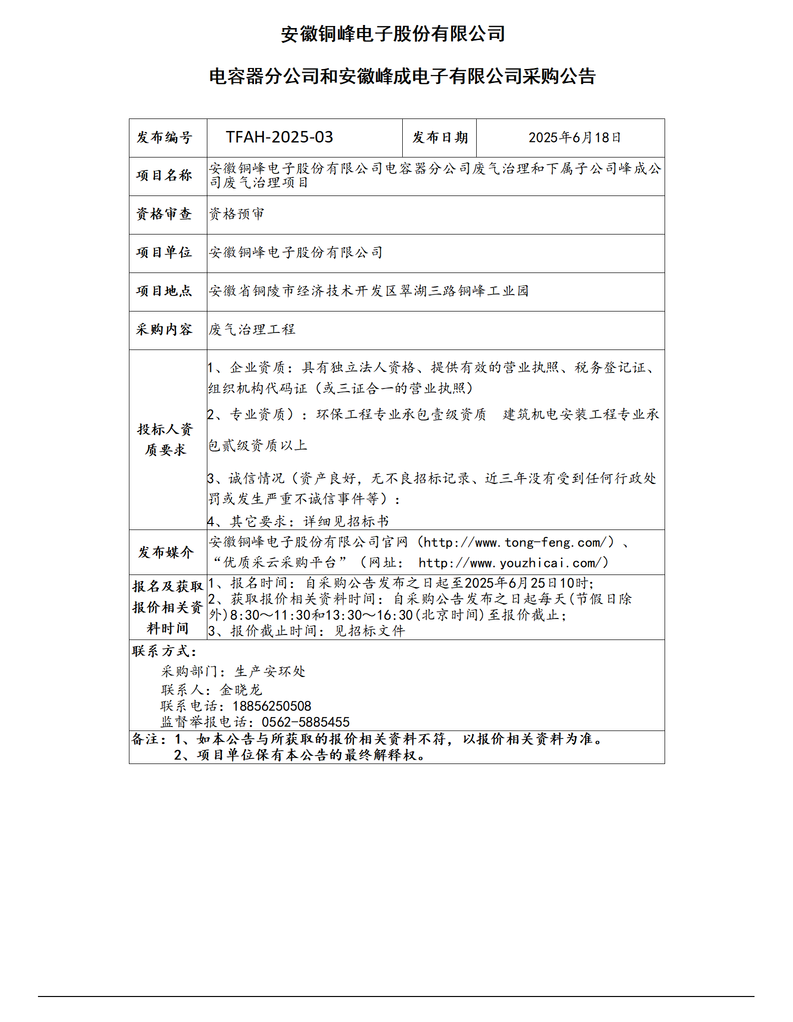 安徽峰成电子有限公司水、电、气安装采购公告_01