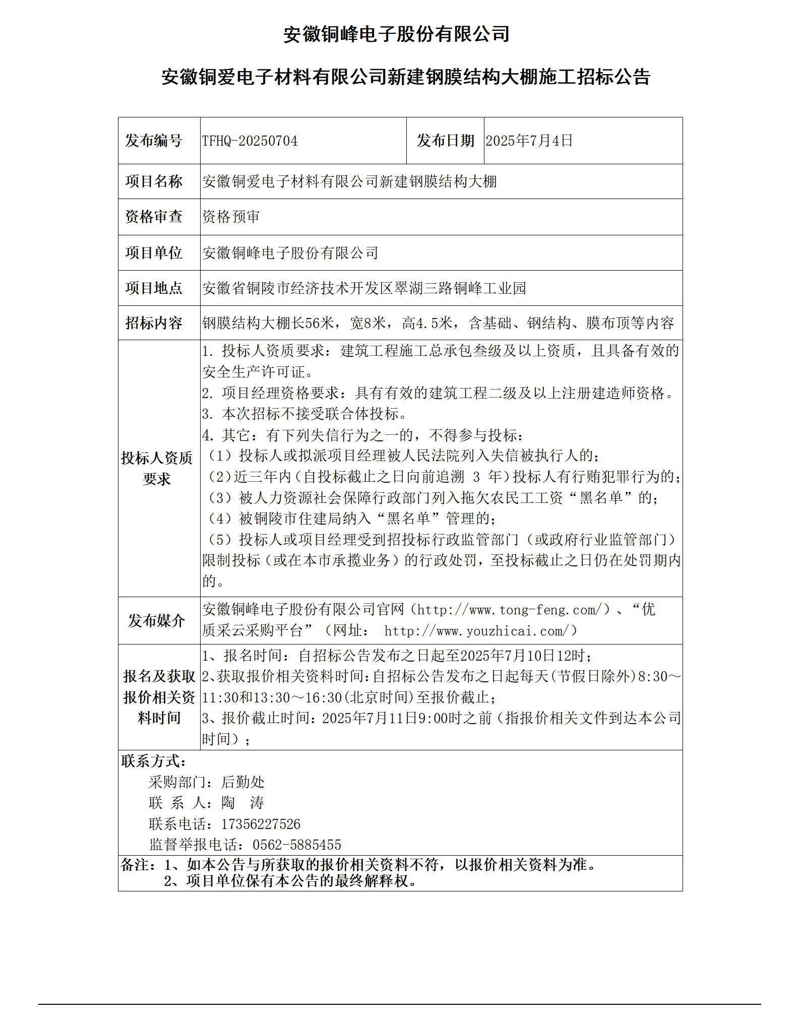 安徽旋乐吧SPIN8电子股份有限公司 (安徽铜爱电子材料有限公司新建钢膜结构大棚招标公告)_01