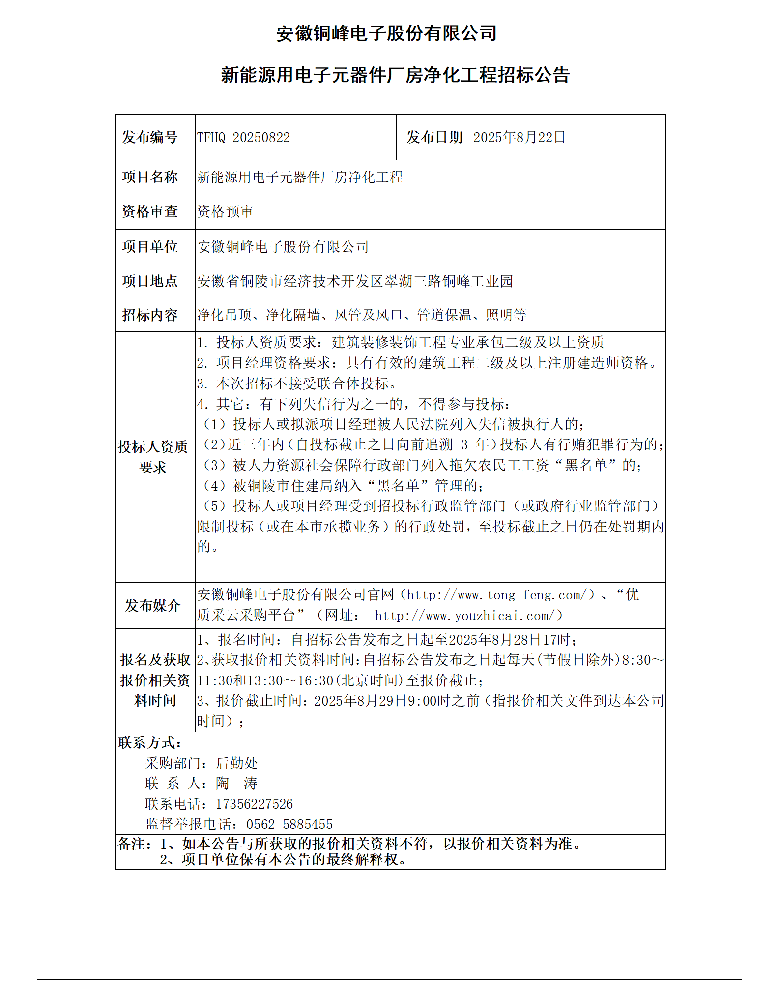 安徽旋乐吧SPIN8电子股份有限公司 (新能源用电子元器件厂房净化工程 招标公告)_01