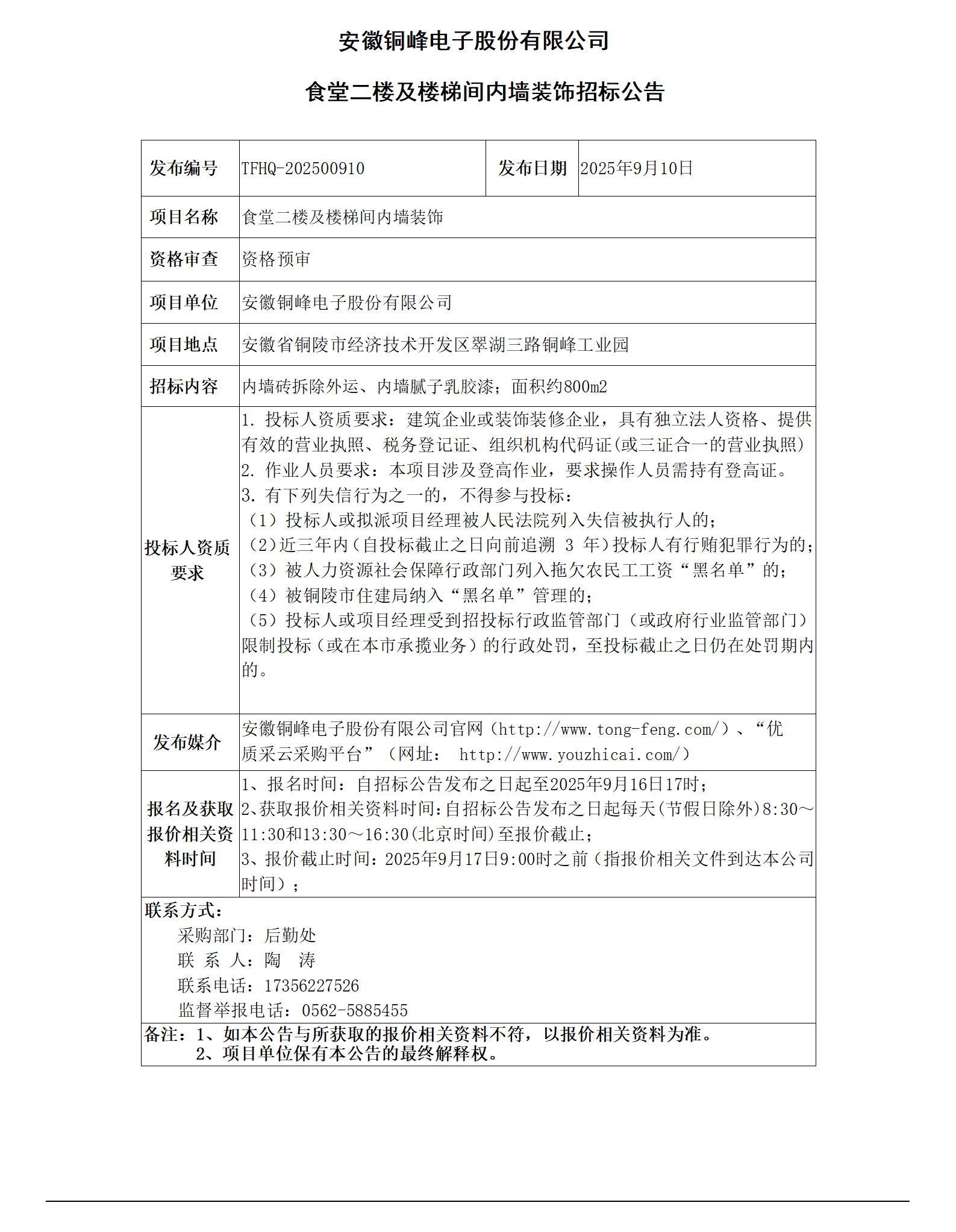安徽旋乐吧SPIN8电子股份有限公司 (食堂二楼内墙及楼梯间装饰招标公告)_01
