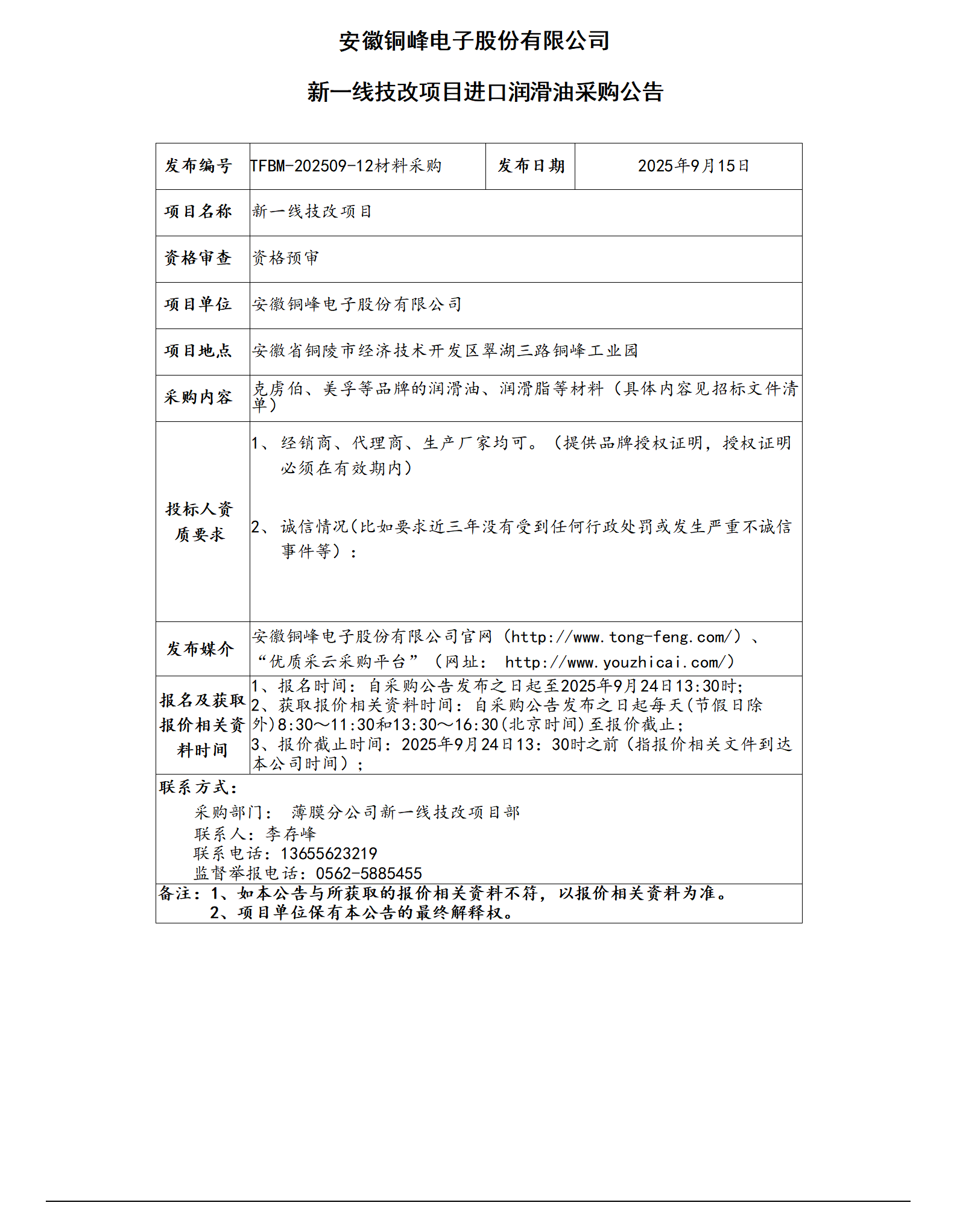 安徽旋乐吧SPIN8电子股份有限公司 (新一线技改项目进口润滑油采购公告)_01