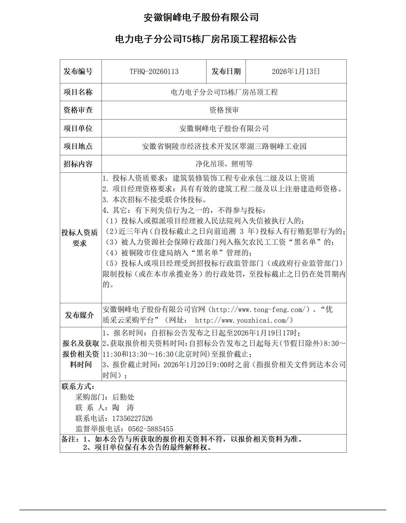 01安徽旋乐吧SPIN8电子股份有限公司 (电力电子分公司T5栋厂房吊顶工程 招标公告)_01