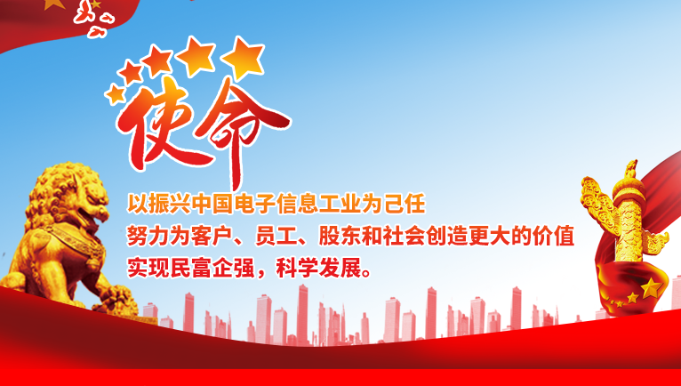 以振兴中国电子信息工业为己任,努力为客户、员工、股东和社会创造更大的价值,实现民富企强,科学发展。