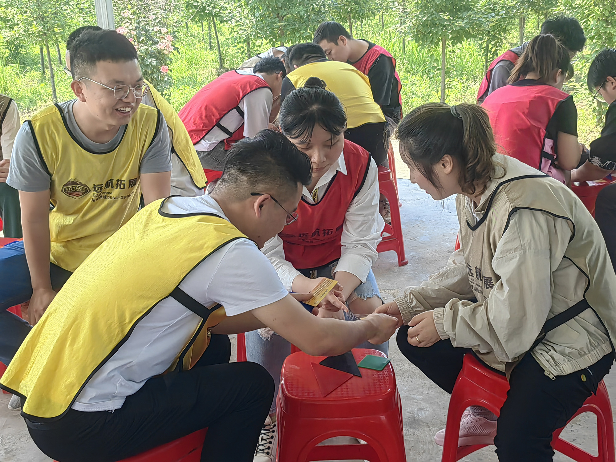 团建活动中,青年员工分组参与,先后开展了“破冰游戏”“巧拼七色板”“自助烧烤”“真人CS对抗”等趣味团建活动。活动中大家团结一心,呐喊助威,笑语连连,既有效释放了工作压力,加强了沟通交流,展示了青年员工们凝心聚力、团结互助、青春洋溢的精气神,又在寓教于乐中强化了青年员工责任担当、资源共享、分工合作、相互信任的团队协作意识。