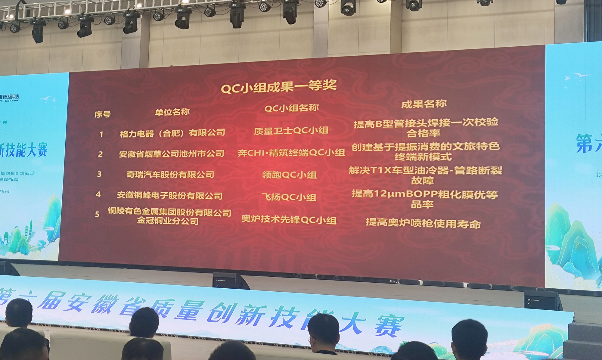 此次公司在安徽省质量创新技能大赛中再创佳绩,不仅是对企业在质量创新领域长期深耕的充分肯定,更是企业重视质量管理、鼓励技术创新的生动体现。近年来,公司将质量创新作为企业发展的重要驱动力,不断完善质量管理体系,鼓励一线员工积极参与质量改进与技术创新活动,涌现出一大批具有实际应用价值的质量创新成果,为企业的持续健康发展奠定了坚实基础。